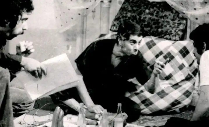 گلی شی؛ در ادامه تصویر روز | بهروز وثوقی و فرامرز قریبیان را در پشت صحنه فیلم گوزنها و در سال 1353 خواهید دید. مرجع: فرادید