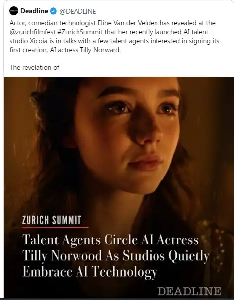 به گزارش گلی شی به نقل از گیمفا به نظر میرسد آژانسهای استعدادیابی هالیوود در آستانه امضای قرارداد با یک بازیگر کاملاً ساختهشده توسط هوش مصنوعی به نام تیلی نورود (Tilly Norwood) قرار دارند.ورود فناوری هوش مصنوعی به هالیوود در سالهای اخیر به موضوعی بزرگ تبدیل شده است، بهویژه آنکه در اعتصاب بازیگران و نویسندگان در سال ۲۰۲۳ یکی از مسائل محوری به شمار میرفت.