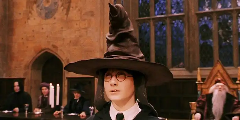 کلاه به محض این که بر روی سر هری گذاشته میشود و شخصیت هری را میبیند، تلاش دارد که او را قانع کند تا اسلیترین را به عنوان گروه خود برگزیند در حالی که ما میدانیم هری نه جاهطلب است و نه زیرک.